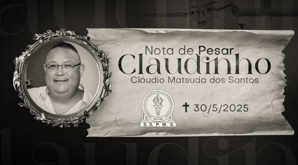 É com profunda tristeza que o Sindicato dos Servidores Públicos Municipais de Suzano (SSPMS) comunica o falecimento de seu presidente, Cláudio Matsuda dos Santos, ocorrido nesta sexta-feira, 30 de maio de 2025, durante a realização de um procedimento cirúrgico. Ainda não temos, até o momento, os horários definidos para o velório e sepultamento. Assim que essas informações forem confirmadas, faremos a devida comunicação por meio de nossos canais oficiais.