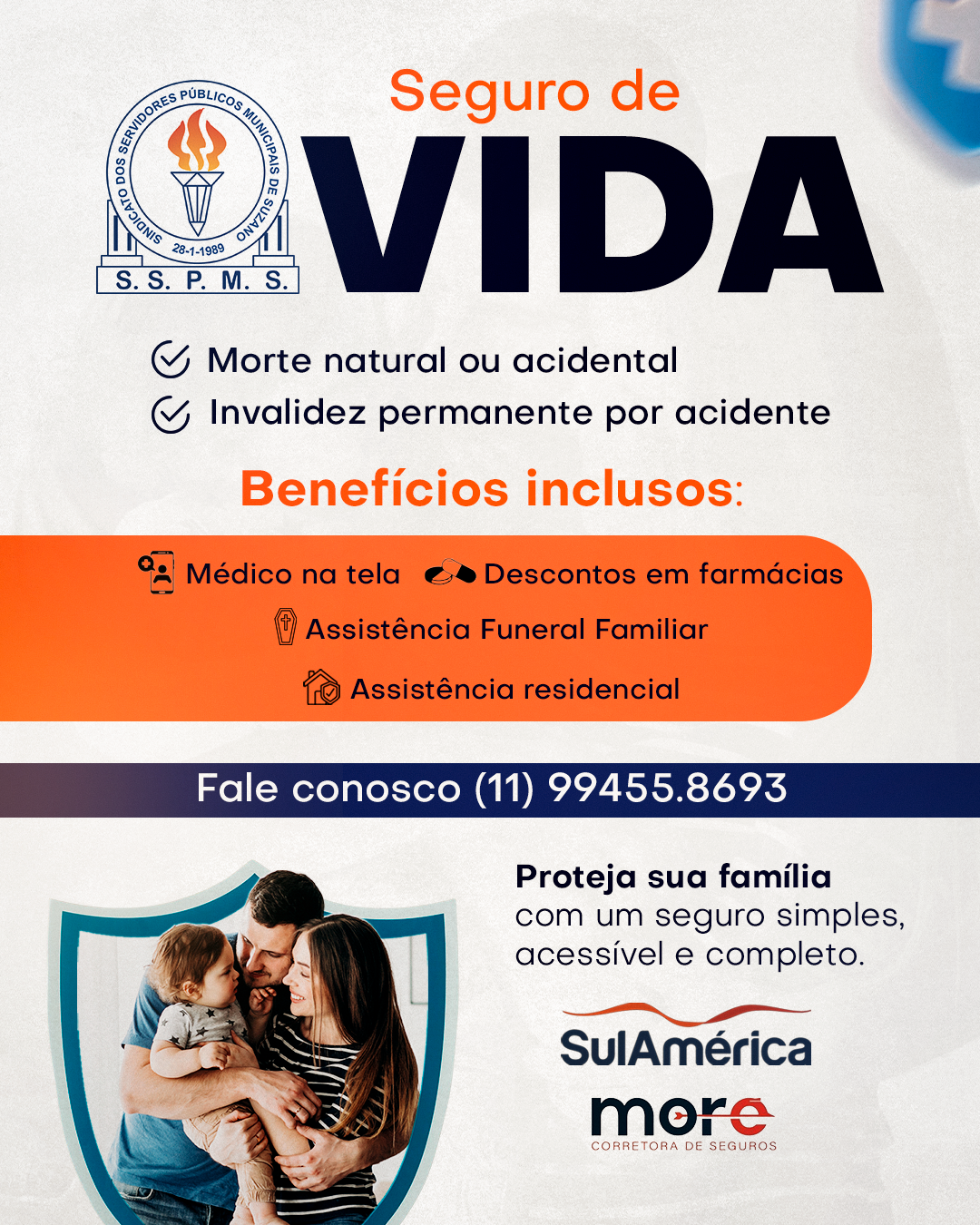 A proposta se destaca por agregar um conjunto de vantagens práticas ao cotidiano dos segurados. O plano inclui acesso ao serviço “Médico na Tela” 🩺, descontos em farmácias, assistência funeral familiar e suporte residencial. É uma solução completa, que alia a solidez de uma grande marca ao custo acessível negociado pelo SSPMS. Esta parceria reforça o compromisso do Sindicato em buscar constantemente vantagens para seus sócios.